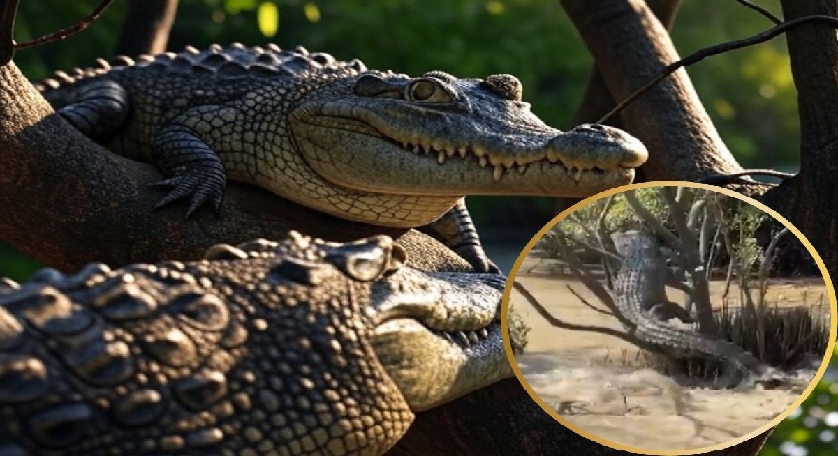 সাধারণত কুমিরের মতো বিশাল ও ভয়ঙ্কর প্রাণীর জন্য গাছে চড়া প্রায় অসম্ভব কাজ। কিন্তু ভয় এই মা কুমিরকে দিয়ে সেই কঠিন কাজও করিয়ে নিল।