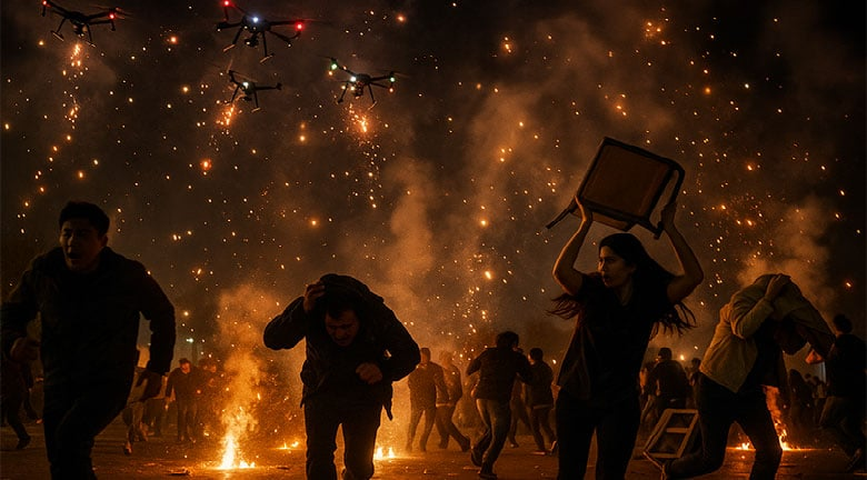 আতশবাজি ও ড্রোনের রঙিন রোশনাই দেখতে বিশাল মাঠে জড়ো হয়েছিলেন হাজারো মানুষ। কিন্তু সেই প্রদর্শনীই পরিণত হলো এক ভয়ংকর বিপর্যয়ে। হঠাৎই আকাশ থেকে বৃষ্টির মতো ঝরে পড়তে শুরু করল আগুনের গোলা, যেখানে আছড়ে পড়ছে সেখানেই দাউ দাউ করে আগুন জ্বলে উঠছে। পরিস্থিতি সামলাতে না পেরে প্রাণ বাঁচাতে যে যেদিকে পারলেন ছুটতে শুরু করলেন আতঙ্কিত জনতা।