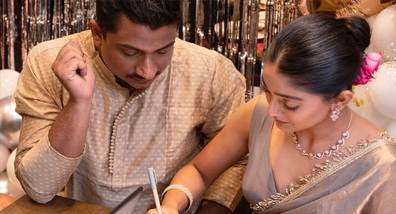 আইনি বিয়ের জন্য দীপান্বিতা ও গৌরব দুজনেই সোনালি রং বেছে নিয়েছিলেন।