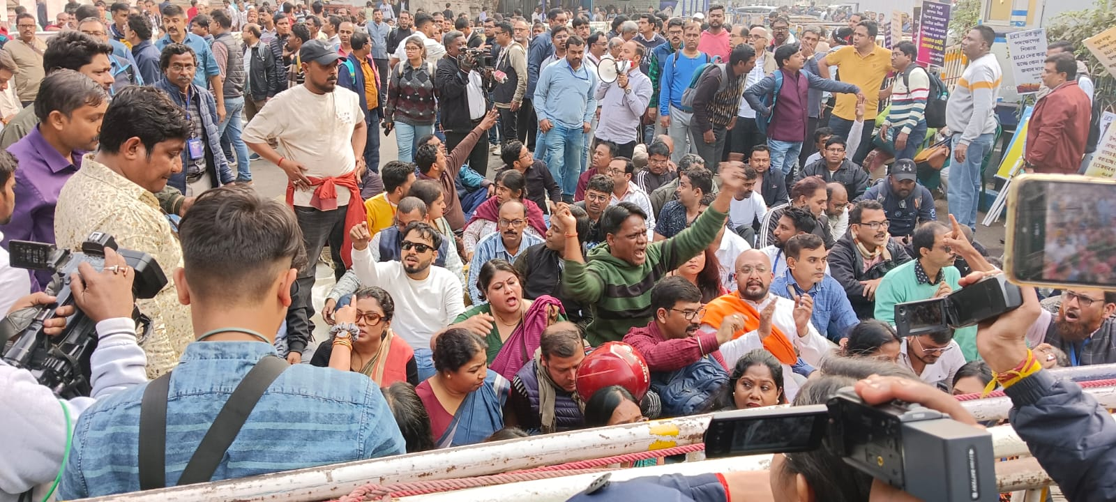 এদিন খসড়া ভোটার তালিকায় ত্রুটি এবং কমিশনের অ্যাপে বারবার পরিবর্তনের প্রতিবাদে ‘বিএলও অধিকার রক্ষা কমিটি’র সদস্যরা আন্দোলনে শামিল হন। আন্দোলনকারীদের দাবি, একের পর এক বিভ্রান্তিকর নির্দেশিকায় তাঁদের ওপর মানসিক চাপ বাড়ছে। সিইও-র সঙ্গে দেখা করতে চেয়েও সময় না মেলায় ক্ষোভ ফেটে পড়ে। পরিস্থিতি এমন পর্যায়ে পৌঁছায় যে, বিক্ষোভকারীরা ব্যারিকেড টপকে ভিতরে ঢোকার চেষ্টা করেন, যার ফলে পুলিশের সঙ্গে ব্যাপক ধস্তাধস্তি শুরু হয়। পুলিশ ইতিমধ্যেই ঘটনাস্থলের সিসিটিভি ফুটেজ সংগ্রহ করেছে এবং একজনকে আটক করা হয়েছে।