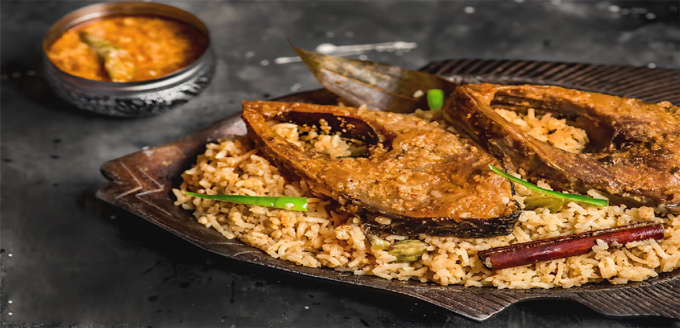 উপকরণ: ইলিশ মাছের টুকরো, গোবিন্দভোগ চাল, পেঁয়াজ কুচি ও বাটা, আদা-রসুন বাটা, কাঁচালঙ্কা, ঘি, সাদা তেল, গোটা গরম মশলা (এলাচ, লবঙ্গ, দারুচিনি), তেজপাতা, বেরেস্তা, হলুদ, লবণ ও সামান্য চিনি। রান্নার জন্য লাগবে গরম জল ও অল্প দুধ।