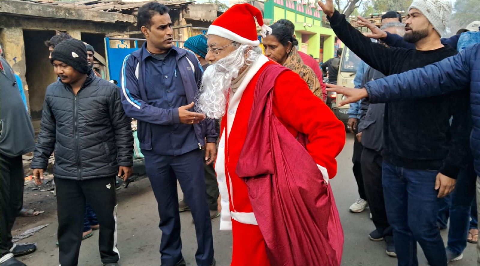 বড়দিনের সকালে এক নজিরবিহীন ও মানবিক দৃশ্যের সাক্ষী থাকল দুর্গাপুর। মাথায় লাল-সাদা টুপি, পরনে সান্তা ক্লজের পোশাক আর লম্বা সাদা দাড়ি— ঠিক এই বেশেই দুর্গাপুরের তালতলা বস্তিতে হাজির হলেন রাজ্যের পঞ্চায়েত ও গ্রামোন্নয়ন মন্ত্রী প্রদীপ মজুমদার। কোনও জাঁকজমক বা রাজনৈতিক প্রচার ছাড়াই সাধারণ মানুষের ভিড়ে মিশে গিয়ে শিশুদের হাতে উপহার তুলে দিলেন তিনি।
