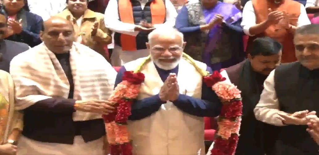 ভারত ও আমেরিকার মধ্যে ঐতিহাসিক বাণিজ্য চুক্তি সম্পন্ন করার পর মঙ্গলবার এনডিএ (NDA) সংসদীয় দলের বৈঠকে প্রধানমন্ত্রী নরেন্দ্র মোদীকে রাজকীয় সংবর্ধনা জানানো হলো। মার্কিন প্রেসিডেন্ট ডোনাল্ড ট্রাম্পের সঙ্গে সফল ফোনালাপের পর আমেরিকা ভারতীয় পণ্যের ওপর আমদানি শুল্ক ২৫ শতাংশ থেকে কমিয়ে ১৮ শতাংশ করার যে ঘোষণা দিয়েছে, তাকে ভারতের বড়সড় কূটনৈতিক জয় হিসেবে দেখছেন রাজনৈতিক বিশেষজ্ঞরা। এদিন বৈঠকে প্রধানমন্ত্রী প্রবেশ করতেই করতালি ও স্লোগানে তাঁকে অভিনন্দন জানান এনডিএ সাংসদরা।
