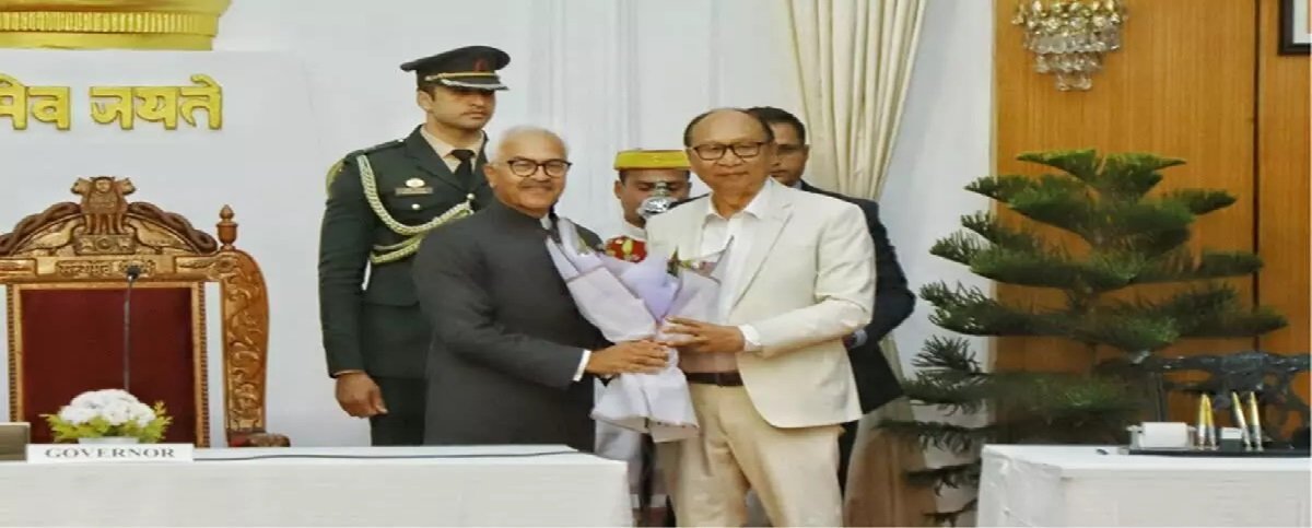 প্রায় এক বছরের দীর্ঘ প্রতীক্ষার পর মণিপুরে ফিরল গণতান্ত্রিক সরকার। বুধবার সন্ধ্যায় ইম্ফলের লোক ভবনে আয়োজিত এক বর্ণাঢ্য অনুষ্ঠানে মণিপুরের নতুন মুখ্যমন্ত্রী হিসেবে শপথ নিলেন বিজেপি নেতা যুম্নাম খেমচাঁদ সিং। রাজ্যপাল অজয় কুমার ভাল্লা তাঁকে পদ ও গোপনীয়তার শপথবাক্য পাঠ করান। গত বছর ৯ ফেব্রুয়ারি এন বিরেণ সিংয়ের ইস্তফার পর ১৩ ফেব্রুয়ারি থেকে রাজ্যটিতে জারি হয়েছিল রাষ্ট্রপতির শাসন। সেই অচলাবস্থা কাটিয়ে খেমচাঁদ সিংয়ের হাত ধরে রাজ্যে নতুন অধ্যায় শুরু হলো।