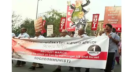 ইরানের সর্বোচ্চ নেতা আয়াতোল্লা আলি খামেনেইয়ের হত্যাকাণ্ডের আঁচ এবার এসে পড়ল কলকাতার বুকে। মধ্যপ্রাচ্যে শুরু হওয়া এই বিধ্বংসী যুদ্ধের প্রতিবাদে এবং মার্কিন-ইজরায়েলি আগ্রাসনের বিরুদ্ধে সরব হল এসইউসিআই (SUCI)। রবিবার ধর্মতলা থেকে কলকাতার মার্কিন দূতাবাস (US Consulate) পর্যন্ত এক বিশাল প্রতিবাদ মিছিল বের করে তারা। মিছিলের অগ্রভাগে থাকা প্ল্যাকার্ডে স্পষ্ট ভাষায় লেখা ছিল— “যুদ্ধবাজ ইজরায়েল-আমেরিকার ইরান আক্রমণের প্রতিবাদে বিক্ষোভ মিছিল।”