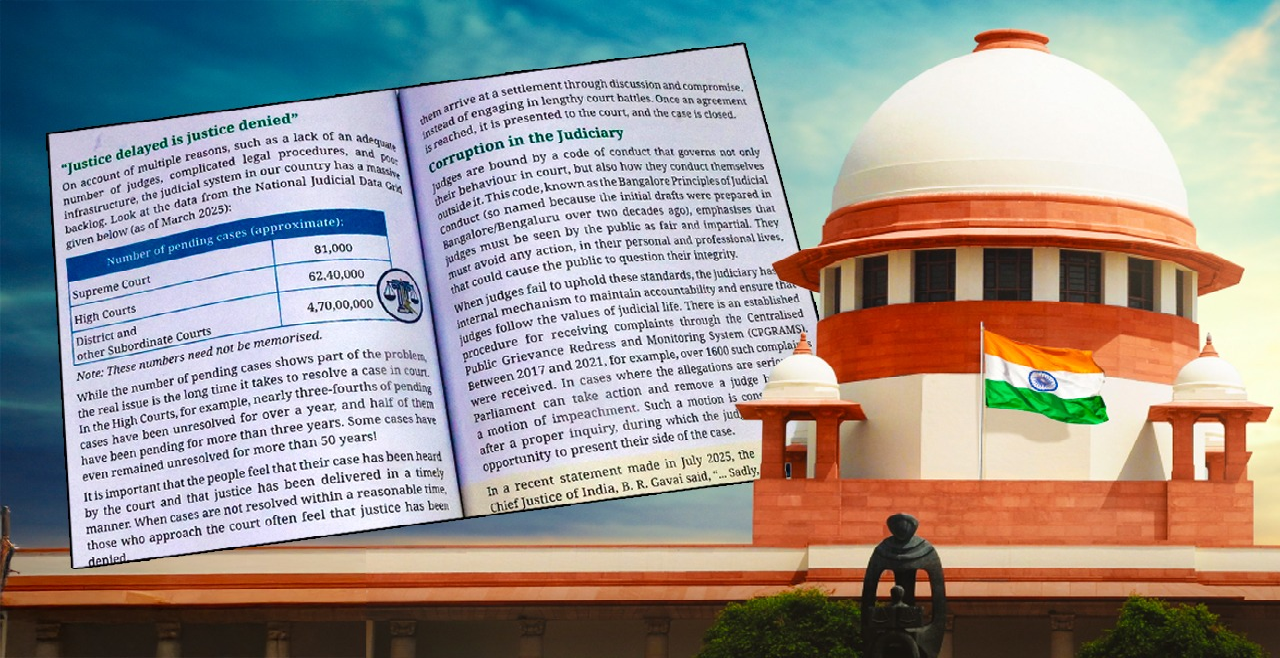 সম্প্রতি ‘এক্সপ্লোরিং সোসাইটি: ইন্ডিয়া অ্যান্ড বিয়ন্ড’ শীর্ষক সমাজবিজ্ঞান পাঠ্যবইয়ের চতুর্থ অধ্যায়ে বিচার বিভাগের সততা ও দুর্নীতি নিয়ে কিছু বিতর্কিত বিষয়বস্তু যোগ করা হয়েছিল। বিষয়টি নজরে আসতেই সুপ্রিম কোর্ট বইটির মুদ্রণ ও বিতরণের ওপর নিষেধাজ্ঞা জারি করে। প্রধান বিচারপতি সূর্যকান্ত অত্যন্ত কড়া ভাষায় জানান, “কোনও অবস্থাতেই বিচার বিভাগের সম্মান ও সততাকে কালিমালিপ্ত করতে দেওয়া হবে না। এমন কোনও কাজ বা তথ্য বরদাস্ত করা হবে না যা বিচার ব্যবস্থার স্বচ্ছতাকে জনগণের সামনে প্রশ্নের মুখে দাঁড় করিয়ে দেয়।”