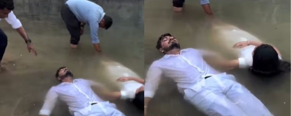 প্রি-ওয়েডিং শ্যুট মানেই এখন নতুন কিছু করার নেশা। কেউ পাহাড়ের চূড়ায় তো কেউ মাঝ আকাশে— কিন্তু এবার যা দেখা গেল, তাতে আক্কেল গুড়ুম হওয়ার জোগাড়। সোশ্যাল মিডিয়ায় ছড়িয়ে পড়া একটি ভিডিওতে দেখা যাচ্ছে, এক হবু বর ও কনে দামী পোশাকে সেজেগুজে একটি জলাশয়ের মাঝখানে শুয়ে আছেন। চোখ বন্ধ, শরীর নিথরভাবে জলে ভাসছে। আর তাঁদের চারপাশ ঘিরে ক্যামেরাম্যানরা আপ্রাণ চেষ্টা করছেন যাতে ফ্রেমটি সিনেমার মতো দেখতে লাগে।