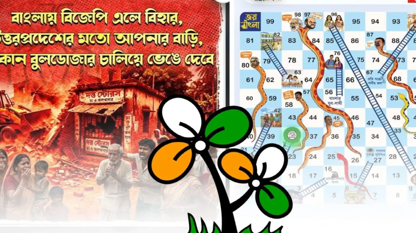 তৃণমূলের প্রচারের তুঙ্গে ‘অনলাইন লুডো’! সাপের মুখে মোদী-শাহ, মই হিসেবে দিদির প্রকল্প