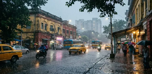 আজ বৃহস্পতিবার কলকাতা-সহ দক্ষিণবঙ্গের একাধিক জেলায় বজ্রবিদ্যুৎ-সহ বিক্ষিপ্ত বৃষ্টির পূর্বাভাস দেওয়া হয়েছে। হাওড়া, হুগলি, পূর্ব ও পশ্চিম মেদিনীপুর, ঝাড়গ্রাম, উত্তর ও দক্ষিণ ২৪ পরগনা এবং কলকাতায় ৩০ থেকে ৪০ কিলোমিটার বেগে দমকা হাওয়া বইতে পারে। আলিপুর আবহাওয়া অফিস জানিয়েছে, শুক্রবার পর্যন্ত এই দুর্যোগপূর্ণ আবহাওয়া বজায় থাকবে। তবে শনিবার থেকে পরিস্থিতির উন্নতি হতে পারে।
