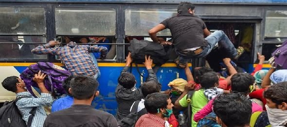 চিত্র: ঘরে ফেরা পরিযায়ী শ্রমিকদের উপচে পড়া ভিড়।