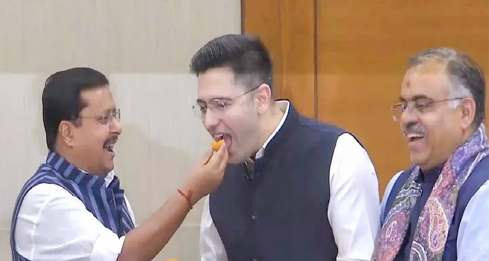 জাতীয় রাজনীতিতে আক্ষরিক অর্থেই এক মহাপ্রলয় ঘটে গেল। অরবিন্দ কেজরিওয়ালের আম আদমি পার্টি (AAP) কার্যত তাসের ঘরের মতো ভেঙে পড়ল। আজ বিকেলে দিল্লির রাজনৈতিক মঞ্চে এক অভূতপূর্ব দৃশ্য দেখা গেল— বিজেপির বর্ষীয়ান নেতা নীতিন গড়করির হাত থেকে লাড্ডু খেয়ে একে একে গেরুয়া শিবিরে নাম লেখালেন রাঘব চাড্ডা, সন্দীপ পাঠক এবং অশোক মিত্তাল। তাঁদের সঙ্গেই রয়েছেন হরভজন সিং ও স্বাতী মালিওয়াল সহ মোট ৭ জন রাজ্যসভা সাংসদ।