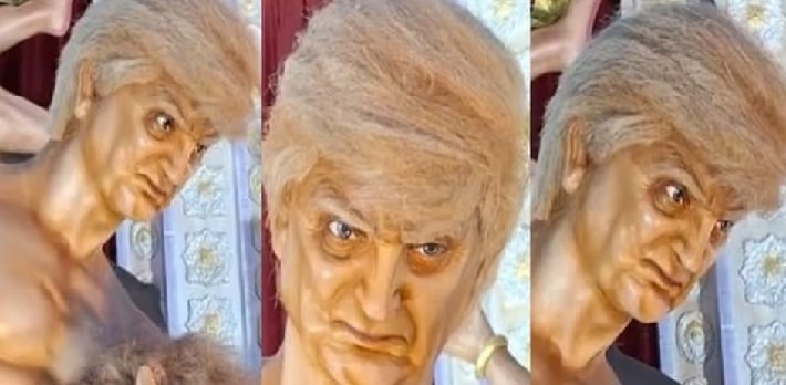 এবারের দুর্গাপূজায় এক বিশেষ আকর্ষণ সৃষ্টি করেছেন মার্কিন যুক্তরাষ্ট্রের প্রেসিডেন্ট ডোনাল্ড ট্রাম্প। তবে এবার তিনি কোনও অতিথি নন, খোদ মহিষাসুর রূপে আবির্ভূত হয়েছেন! ব্লন্ড চুল এবং ফর্সা গায়ের রঙের এই ট্রাম্প-রূপী অসুরের ছবি সোশ্যাল মিডিয়ায় তীব্রভাবে ভাইরাল হয়েছে, যা দেখে নেটিজেনদের একটাই প্রশ্ন—কোথায় গেলে এই মূর্তি দেখা যাবে?